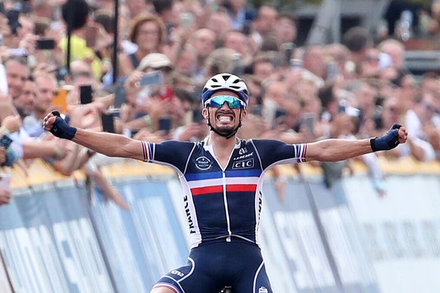 A Leuven en Belgique à loccasion du 88e Mondial de cyclisme cest le Français Julian Alaphilippe qui a réalisé le doublé après son premier succès obtenu lan passé à Imola en ItalieLe coureur âgé de 29 ans sest imposé en solitaire tandis que Dylan Van Barrle et Michael Valgren ont pris. Course sur route hommes Élites 2625 km1- Eddy Merckx Belgique 6h 52m 22 vitesse moyenne. La rédaction du Parisien na pas participé à la réalisation de cet article.